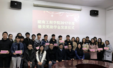 胡爱钦书记对获奖的同学们表示祝贺。他对德美公司持续11年来的爱心资助表示敬佩和感谢。胡书记希望同学们能够借助学校和企业共同搭建的平台,扎实学好理论知识,获得丰富的实践经验,努力成为有用之才。