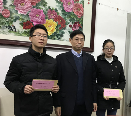 现场的领导和老师共同为受资助的学生颁发了奖助学金。本年度“德美奖助学金”在化学化工学院共颁发奖、助学金各10名,合计发放奖助学金1.5万元。