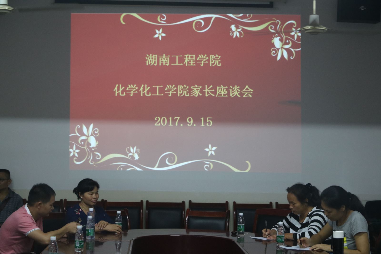 9月15日晚8点,为2017级新生在大学能有明确的规划,与新生家长能够深入交流,我院在四教306举行了2017届新生家长座谈会。参加会议的领导有我院院长邓继勇、党总支书记胡爱钦、副院长张何、副院长陈建芳、党总支副书记张建国、学办主任吴菲以及学办老师刘思博、易苏、李娥君和17级各班班主任。一百余名新生家长参加本次座谈会。
