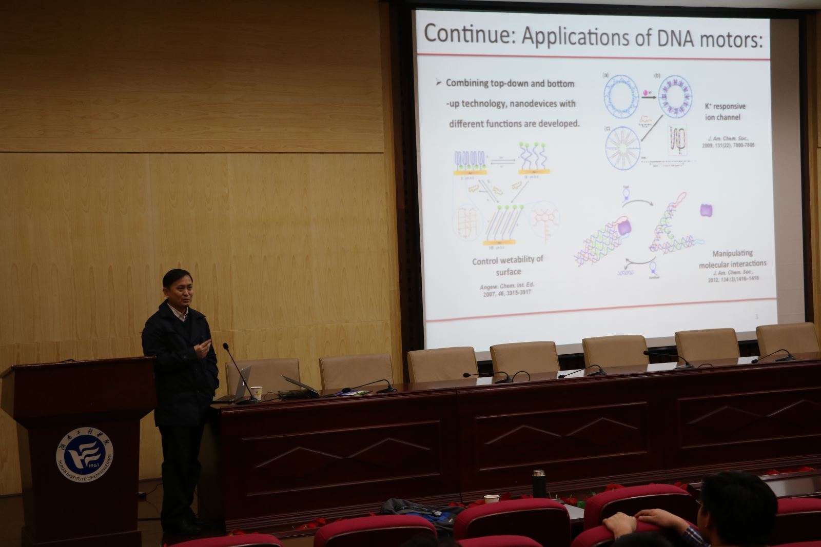 此次学术讲座由学校科技处、学科办以及化学化工学院组织开展,特邀中科院化学所范青华研究员、清华大学化学系刘东生教授,针对目前前沿的离子不对称催化以及超分子水凝胶的发展等热点问题,分别作了题为《阴离子导向的不对称催化氢化反应》、《基于DNA组装的超分子水凝胶及应用》专题讲座。
