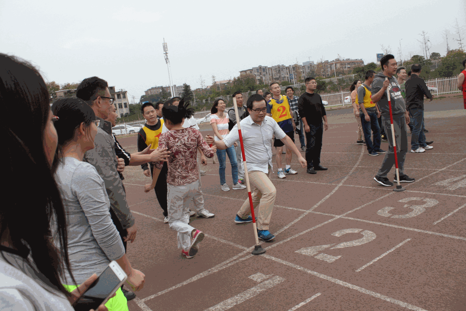 本次趣味运动会共设有40米迎面接力、爱心传递、二龙戏珠、同心协力和拔河五个项目。从比赛开始到结束,化学化工学院的老师们团结一致,互相帮助,彼此加油、欢呼、喝彩,现场欢声笑语此起彼伏,展现了他们在生活中可爱的一面。在迎面接力比赛中,老师们配合默契、反应迅速,取得了接力第四名的好成绩。