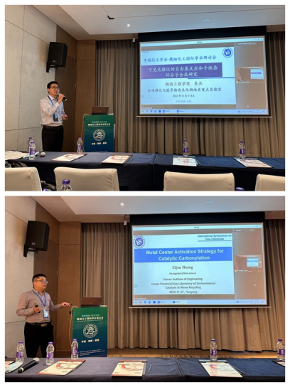 在此次会议中,学院教师及研究生积极参会交流、展示最新学术成果,青年教师谭建平和黄子俊博士分别作“可见光催化的自由基反应和手性杂环分子的合成研究”以及“Iron-catalyzed hydroaminocarbonylation of alkynes: Selective and efficient synthesis of amides”等主题的报告。