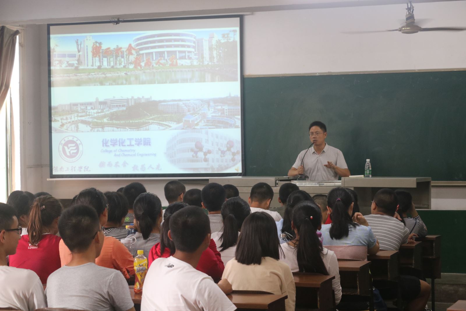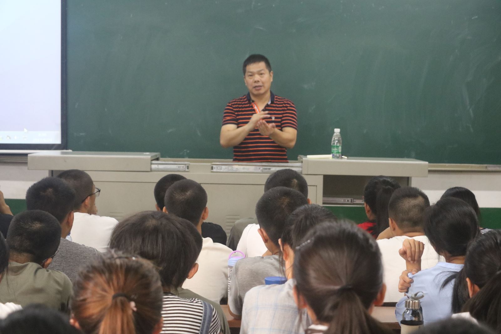 9月24日上午8点30,化学化工学院2017级新生按专业分别在四教开展了各专业的专业介绍宣讲会。出席宣讲会的有化工(分析)专业宣讲人陈立新老师、化工(精细)专业宣讲人尹爱武老师、轻化专业宣讲人陈镇老师、高分子专业宣讲人方正军老师、生物专业宣讲人张儒老师、应化专业宣讲人肖鑫老师、材化专业宣讲人刘万民老师、化学化工学院院长邓继勇及化学化工学院全体新生。