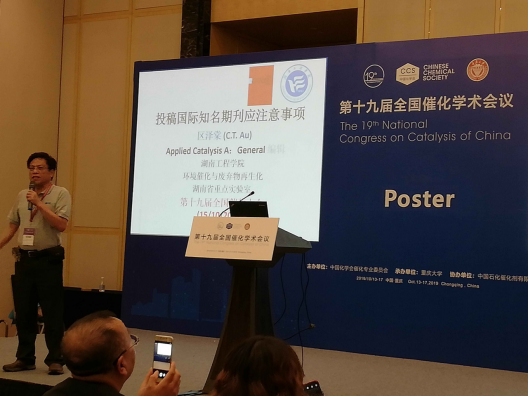 10月13日至17日,由中国化学会催化委员会主办,重庆大学承办的第十九届全国催化学术会议在重庆召开。我校伟德betvlctor1946源于英国特聘教授区泽棠老师和兰东辉博士受邀参加了此次会议,区泽棠教授在专题研讨会上作了题为《投稿国际知名期刊应注意事项》的专题特邀报告并主持了分会场报告。
