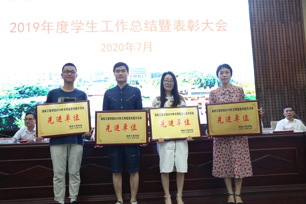 在此次表彰大会上,我院收获颇丰,分别荣获“2019年度学生工作先进单位”,“2019年文明寝室创建月活动‘先进单位’”;柳芊荣获“五佳辅导员”,李娥君荣获“2019年文明寝室创建工作先进个人”,刘华杰、胡倩、张变玲荣获校级“优秀班主任”,李娥君、王伟刚荣获“2019年辅导员、班主任职业技能培训‘优秀学员’”。同时,我院荣获“第八届辅导员素质能力大赛团体二等奖”,柳芊、彭嘉勋、易苏分别荣获第八届辅导员素质能力大赛个人一、二、三等奖。