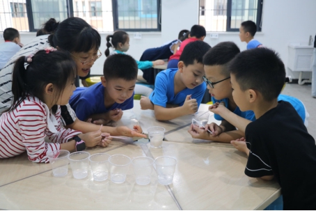 在实验开始前,黄赛金老师和四名“实验助理”再次将实验所需器材进行清点,对上课教案进行预演,对实验中所需的注意事项进行预估。一切准备就绪后,孩子们来到教室,令人期待的科学体验活动就要开始了。