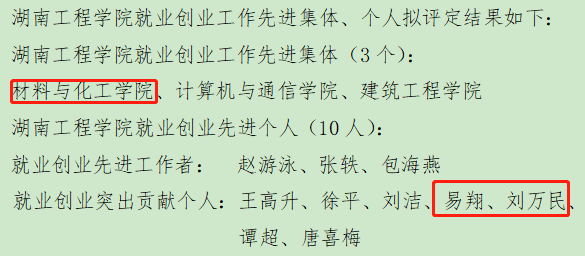 10月28日,学校公布了2018-2020学年度就业创业先进集体、先进个人评选结果,我院获评“就业创业先进集体”,易翔、刘万民获评“就业创业突出贡献个人”。