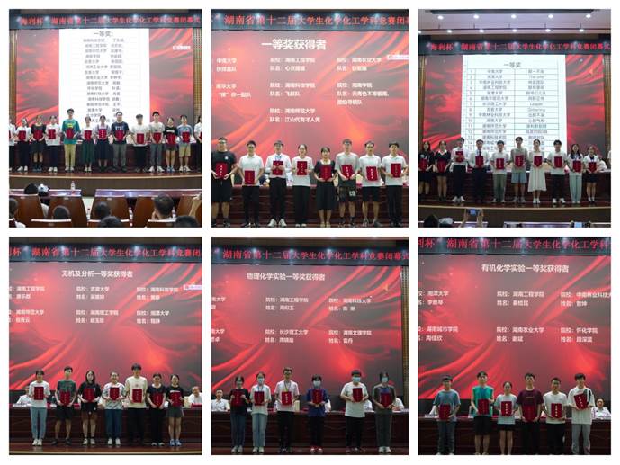 22日下午,湖南省教育厅高教处副处长王荣,校党委副书记、校长易兵,党委委员、副校长罗毅平、张小刚,湖南科技学院副校长何福林,湖南省化学化工学会理事长刘卫东,湖南省大学生化学化工学科竞赛委员会主任郭栋才,我校教务处处长方正军以及大赛评审专家、省内高校各参赛队伍、活动承办(协办)单位和赞助单位代表出席闭幕式,现场对获奖单位和团队进行了颁奖。