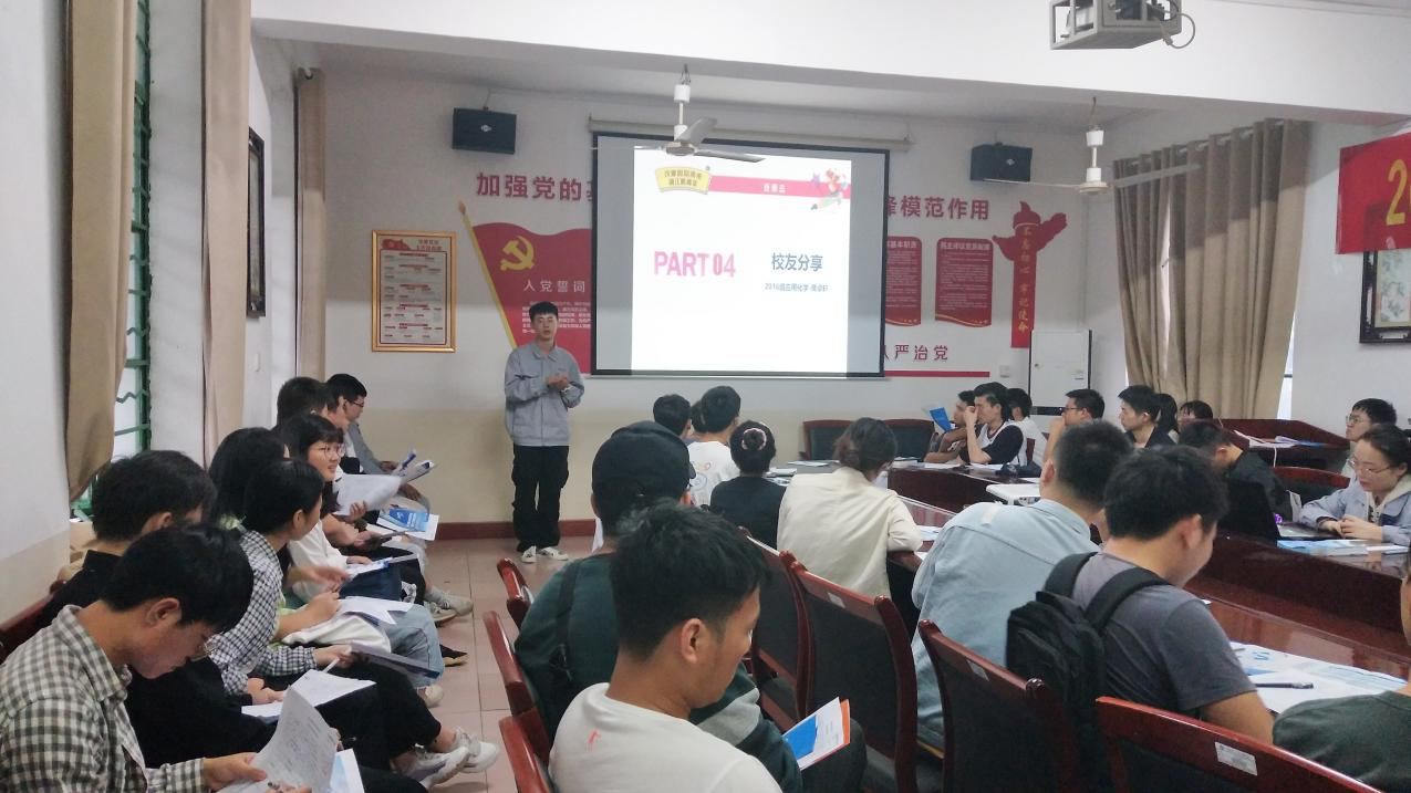 9月28日,学院在四教306召开了就业经验分享会。主讲人为湘江涂料有限公司应用化学16级学长蒋卓轩。应用化学、化学工程与工艺专业40余名师生参加。