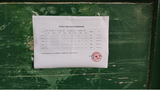 古人云:“蓬生麻中,不扶而直。”由此可见,一个良好的学习环境对于考研学子在学业上的发展的确起着不容忽视的作用。 古亦有“孟母三迁”的典故,讲的也是这方面的道理。故化工院早已为考研学子在四教五楼成立专门的考研自习室。考研自习室不仅基础设施完善,而且紧邻教师办公室,老师们能更加方便、及时地为考研学子们答疑解惑,并定期提供无偿辅导。