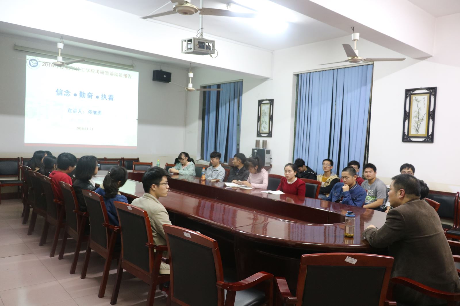 为了鼓励同学们积极考研,勉励大家努力学习,11月21日19点,化学化工学院于四教306举行了化工专业的考研宣讲会,本次宣讲教师是化学化工学院院长邓继勇,全体大三化学工程与工艺专业的同学到场聆听。