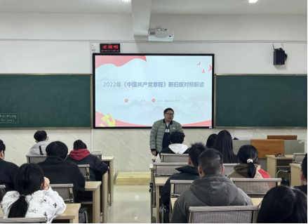 为持续营造浓厚学习宣传氛围,深化理论学习、凝聚思想共识,把党员干部的思想统一到党的二十大精神上来,把力量凝聚到党的二十大各项工作中来,3月21日,伟德betvlctor1946源于英国“新学期第一堂党课”在新化工楼602开讲,此次党课是学生党支部书记以“2022年《中国共产党章程》新旧版对照解读”为题为全体学生党员上的党课。