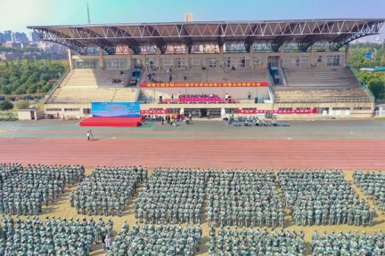 10月10日上午,我校2020级新生军训成果汇报暨总结表彰大会在田径场举行。教官及学院方阵依次以雄健的步伐、响亮的口号、昂扬的士气从主席台前通过,接受检阅;退伍复学老兵首次进行刺杀操、特种战术表演;新生及退伍老兵代表相继发言;校长易兵作军训总结报告。大会为获奖方阵、优秀单位颁发锦旗,我院获多项集体及个人表彰。