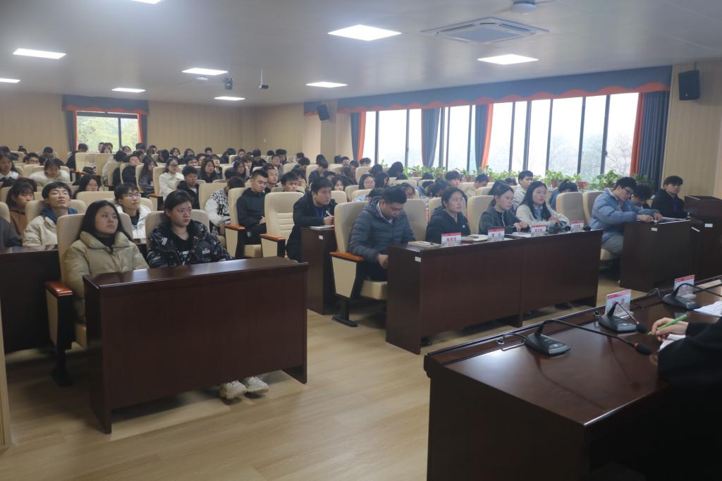 罗荃表示,各班班委要增强管理意识、服务意识,学会总结和思考,助力提高学院学生工作管理水平,同时,她提醒学生们注意网络安全,杜绝网络刷单,预防网络诈骗,增强法律意识。学办主任易苏通报了上学期学院四项检查情况,对学生网络安全和交通安全进行强调,他详细解读了我校“五育并举”学生综合素质测评指标的具体内容,鼓励同学们积极参加学校开展的各项活动,促进均衡发展。学办其他辅导员分别就各自负责的工作,从学院学风、宿舍管理、公共教室卫生管理、就业招聘、团学工作、党员发展和心理健康等方面对近期工作情况进行通报和安排。