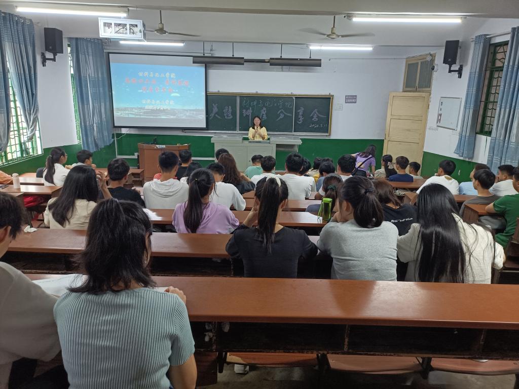 5月11日下午,我院邀请外国语学院刘向红教授和我院英语达人在四教109教室为同学们开展了英语四六级、考研讲座,辅导员、英语俱乐部指导老师李娥君老师主持会议,100余人参加学习和交流。