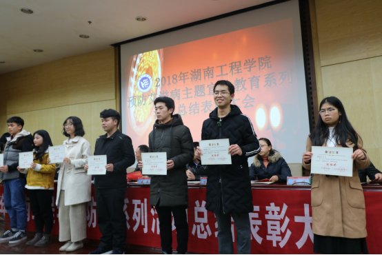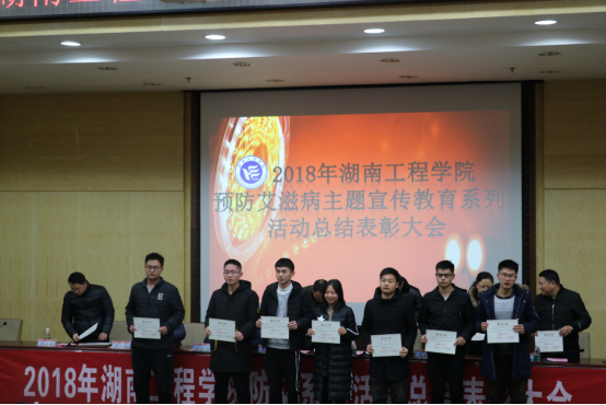 会议伊始,纺织服装学院健康讲师熊佳丽同学担任主讲,为在座的同学带来了一堂生动有趣的防艾知识介绍课。在座同学踊跃发言,积极答题。随后,主持人以有奖竞猜的形式与在座同学进行了互动与交流。紧接着,副校长杨剑瑜发表重要讲话,校学联主席廖华发表防艾演讲。在座同学认真听讲,反响热烈。最后,由后勤处处长颜卫人公布表彰大会的表彰名单,相关获奖人员上台合影留念。此次表彰大会中,我院在防艾特色活动成果汇报中荣获第六名,我院吴旭敏同学荣获艾滋病防治知识“健康讲师”大赛优胜奖,同时我院多名学生也在防艾主题宣传教育系列活动中获优秀个人奖。