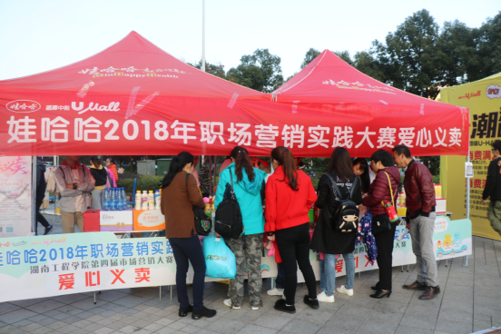 2018年11月23日晚上七点到11月25日晚上九点,伟德国际victor1946爱心社在湘潭中心U&mall会场举办了娃哈哈2018职场营销爱心义卖活动。