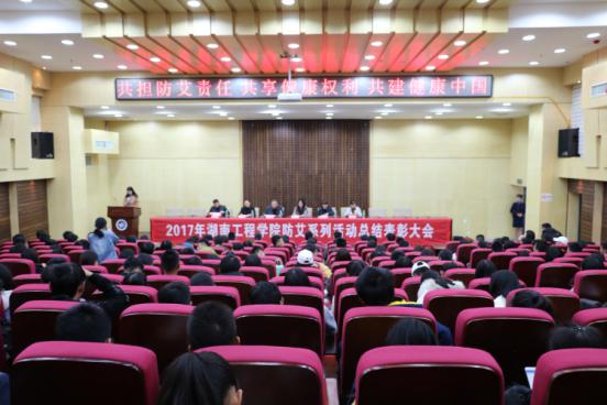 2017年12月12日下午2点40分,在我校图书馆二报告厅召开了2017年伟德国际victor1946防艾系列活动表彰总结大会。伟德国际victor1946后勤处颜卫人处长,岳塘区疾控中心廖奇志女士等多位领导,以及来自学校各个学院的学生代表到场参加了本次大会。