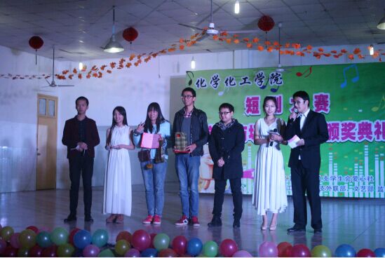12月6日晚7点,化学化工学院在北校区学海二食堂活动中心举办2015届校园短剧大赛暨市场营销大赛颁奖典礼。化学化工学院学办老师刘思博、易苏出席本次典礼并担任短剧评委,会场人头攒动。