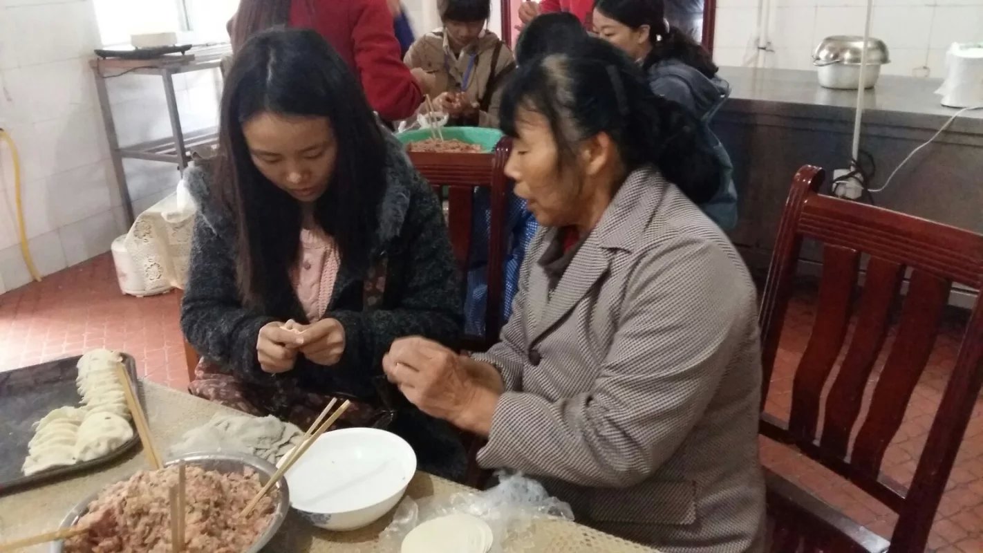 天气的寒冷早已被志愿者的热情驱走。一到目的地,志愿者们便进行打扫卫生、清洁门窗等工作,为老人们营造一个整洁干净的居住环境。紧接着,志愿者们在工作人员的指导下,开展同老人一起学习包饺子进行互动。期间,老人翻出相册,向同学们讲述老一辈的红色历史。温馨的气氛中,时间悄悄流走,然而老人和同学们相处还意犹未尽。在活动的最后,老人们还同全体志愿者合影留念。