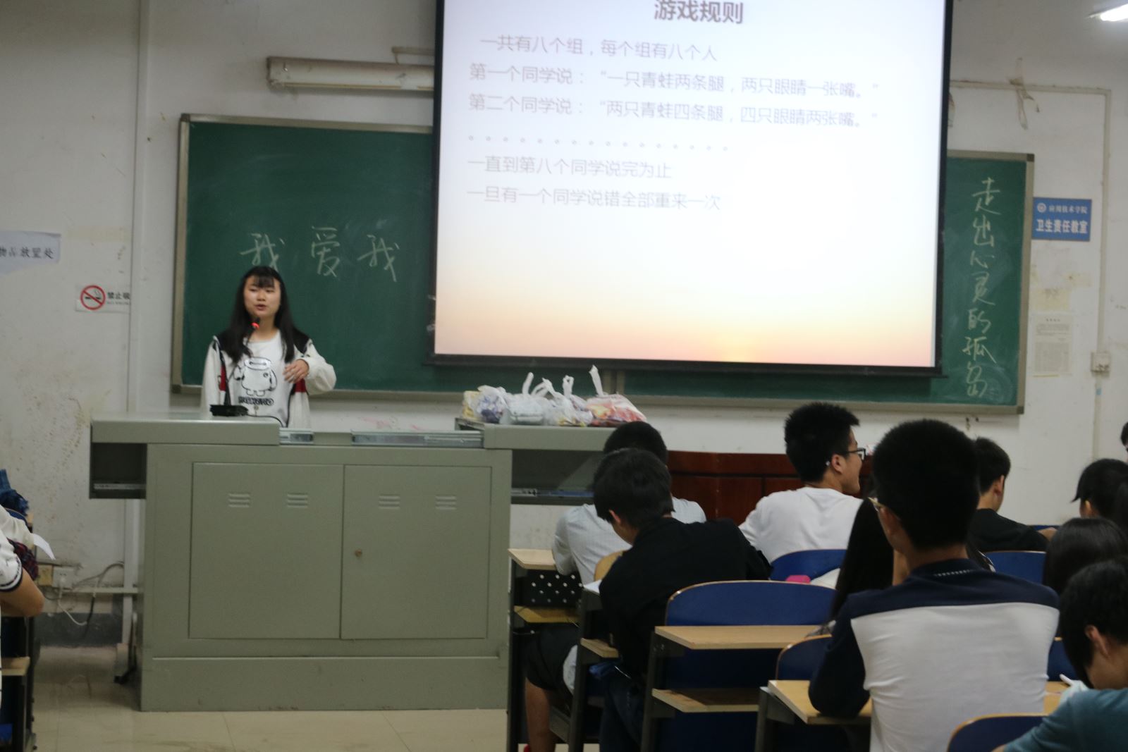 活动以心理委员分享“心理健康”方面知识开始。心理委员将准备充分的资料发放给同学,并对其中列举的极端心理问题进行集体发言讨论。各班心理委员着重强调同学们在学习生活中遇到自身无法解决的问题,可以询问老师或同学,避免由于阴郁积压造成不可挽回的后果。为活跃班级气氛,增强班级凝聚力。各班班长播放精心制作的班级PPT,并向本班同学介绍了班级学习情况、生活小事及班级活动等点滴细节。紧接着,各班在心理委员的带领下观看包括“复旦投毒案”等有关大学生心理问题的新闻报道,许多同学在观影后都表示将正视心理问题,妥善处理同学之间的交往。观影后,材料1501班组织开展了“猜猜室友或同学喜好”等拉近沟通的小游戏,使同学们在轻松的氛围中放松紧张的心情。化工1501与化工1502班利用制作的场景弹幕让同学们宣泄日常生活中的负面情绪,拥抱阳光青春。其他各班都有利用几个趣味游戏拉近同班同学之间的距离,欢声笑语从教室里传出来。