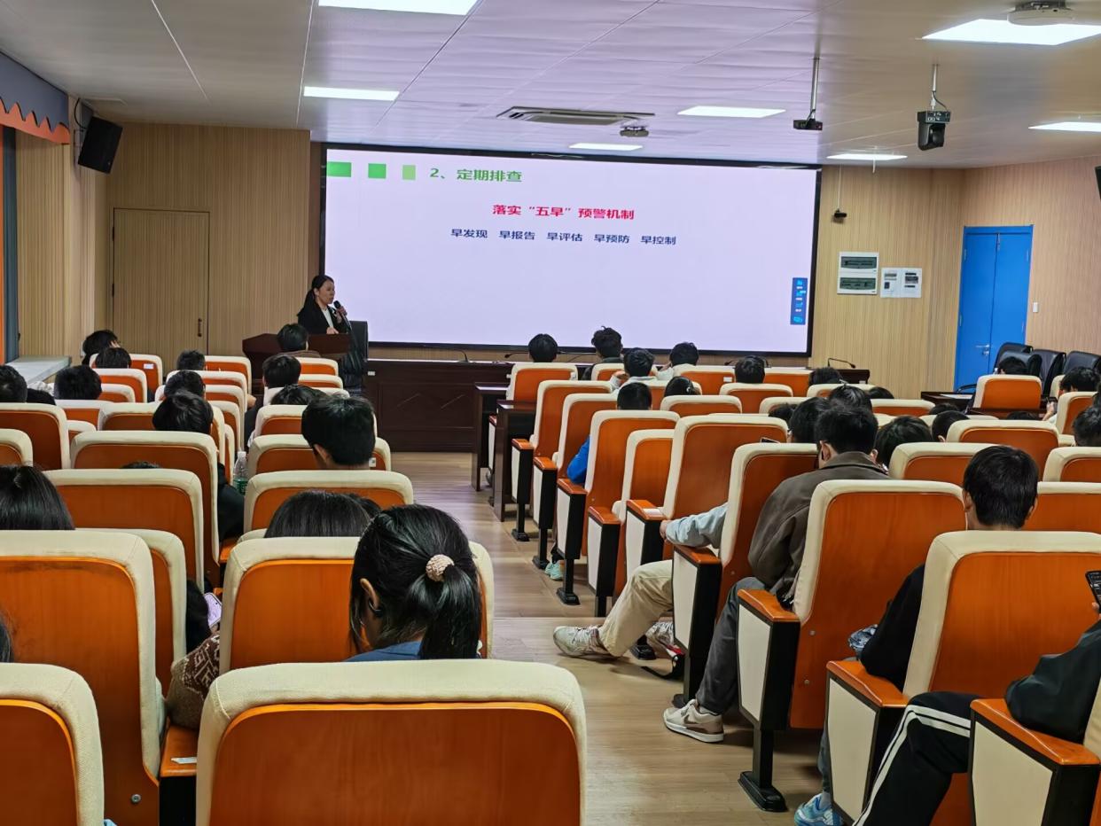 培训围绕“明确职责、掌握方法、筑牢防线”三大核心展开,内容兼具专业性与实用性。首先,在岗位职责讲解环节,黄老师将心理委员比作“班级晴雨表”,强调其需敏锐捕捉同学心理动态;将寝室联络员定义为“宿舍暖心人”,突出其在日常关怀中的关键作用。这些生动比喻让学生深刻认识到自身责任。同时,黄老师重点解读“校园心理危机干预体系”与“五早预警机制”,通过案例分析,明确危机事件处理流程,确保学生在突发情况时能快速响应、科学处置。