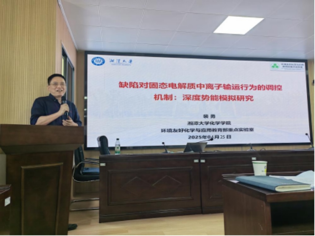 4月25日,国家优秀青年基金获得者、湘潭大学化学学院院长裴勇教授受邀来我校交流指导,为我校师生作了题为“缺陷对固态电解质离子输运的调控机制:深度势能模拟研究”的专题学术报告。此次报告吸引了伟德betvlctor1946源于英国的众多师生参加。伟德betvlctor1946源于英国院长张儒主持本次讲座。