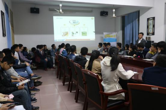 2017年10月20日晚上7点,乳源东阳光药业有限公司于我校四教306举行校园招聘会。乳源东阳光药业有限公司办公室主任李伟霞等两位公司领导、化学化工学院廖云峰老师出席此次招聘会。主讲人李伟霞以幽默的开场活跃了气氛。本次招聘会主要面向高分子、化工等专业大四的学生。