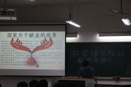 3月24日晚,化学化工学院17级、18级各个班级于红楼多个教室开展无偿献血宣传主题班会。