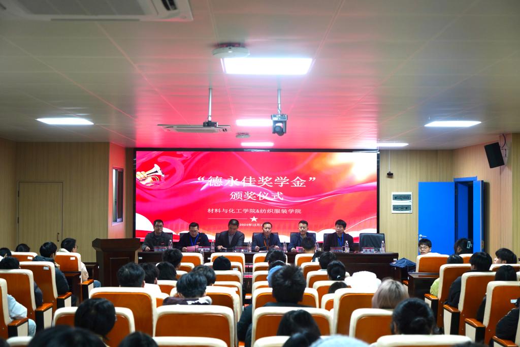 12月12日下午,我校德永佳奖学金颁奖典礼在材化楼A301举行。校党委委员、副校长魏克湘,东莞德永佳纺织制衣有限公司人力资源部总监傅桂君、薪酬绩效科主任郑黎,校友联络中心主任张宏、纺织服装学院党委书记李爱国、党委副书记何斌、伟德betvlctor1946源于英国党委书记徐粤宇、副院长张儒、党委副书记罗荃、获奖受助学生及学生代表参加。仪式由徐粤宇主持。