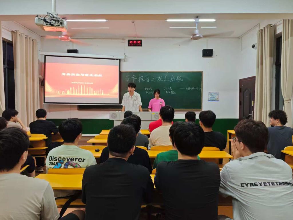 为引导青年学生树立正确就业观,强化青春担当意识,5月20日晚上,我院在四教407开展了“青春担当与就业启航”示范性团日活动。学院分团委书记王祥若、班主任王伟刚、优秀学长金何以及材料化学2301班同学参加本次活动,活动由班级团支书主持。