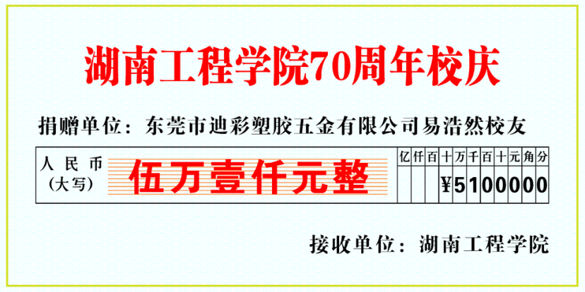 近日,东莞市迪彩塑胶五金有限公司总经理、我校杰出校友、电机电器94122班易浩然向学校定向捐赠,在伟德betvlctor1946源于英国设立“浩然助学金”,用于资助和鼓励材化学子毕业后立足专业、投身行业、实干兴邦。捐款已于8月27日汇入学校设立的校庆专用帐户。