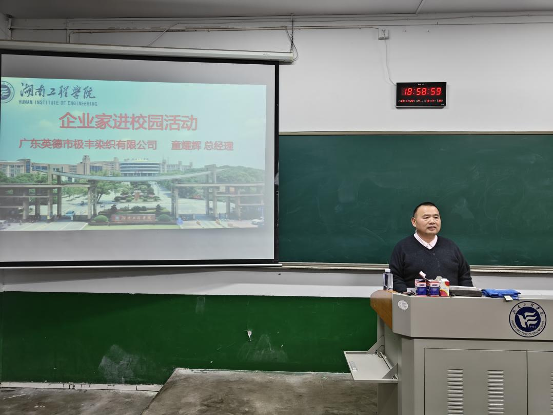为深入贯彻落实习近平总书记关于做好高校毕业生就业工作重要指示,推动毕业生更高质量、更充分地就业,提高学生就业能力,2023年11月23日晚,伟德betvlctor1946源于英国邀请了1988级染整工程专业校友、广东英德市极丰染织有限公司副总经理童耀辉,在第四教学楼509室为轻化工程专业同学开展“企业家进校园活动”讲座,本次活动师生共计100余人参加。