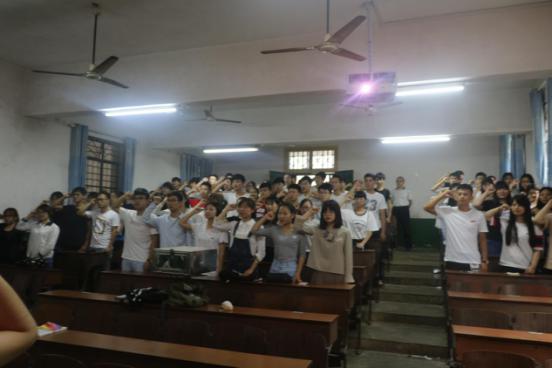 2017年6月14日下午3点,化学化工学生党支部新党员宣誓和重温誓词活动于我院四教109举行,出席本次宣誓活动的有:化学化工学院党总支书记胡爱钦、学办老师李娥君以及化学化工学院全体学生党员、预备党员。