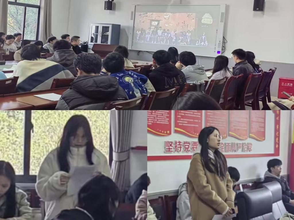 2023年11月16日中午,我院三个学生党支部组织开展“弘扬教育家精神,勇担新时代使命”主题党课。本次党课面向三个学生党支部全体成员,旨在引领学生党员深入学习习近平总书记关于建设教育强国的重要论述,鼓励学生了解和熟知教育家精神,为学校高质量发展蓄势赋能。本次党课由三位学生党支部书记易苏、刘思博、王祥若主讲。