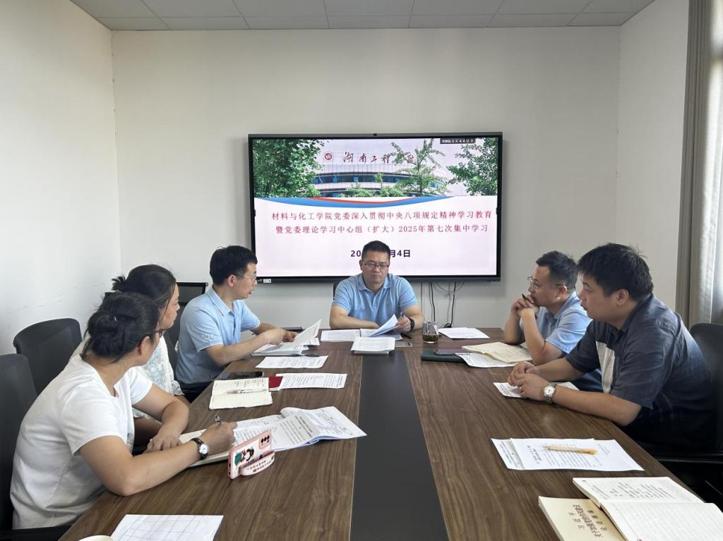7月4日上午,材料与化工学院党委在304会议室召开深入贯彻中央八项规定精神学习教育读书班暨党委第七次理论学习会议。会议由学院党委书记徐粤宇主持,党委理论学习中心组成员、党支书记参加学习。