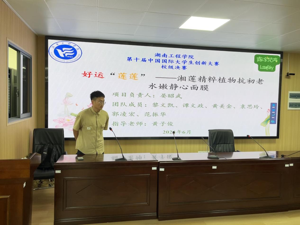 在校赛中获得佳绩的“一石当关,万火莫燃——守护生命财产安全的新型海泡石阻燃剂”“好运‘莲莲’——湘莲精粹植物抗衰老水嫩静心面膜”项目团队分别进行了展示汇报,介绍了选题背景与意义、研究内容、研究过程、研究成果等内容。张何现场指导各组PPT汇报的不足之处,并根据中国国际大学生创新大赛(2024)评审规则,逐项给出修改建议,各组汇报人认真聆听,结合老师意见完善作品。