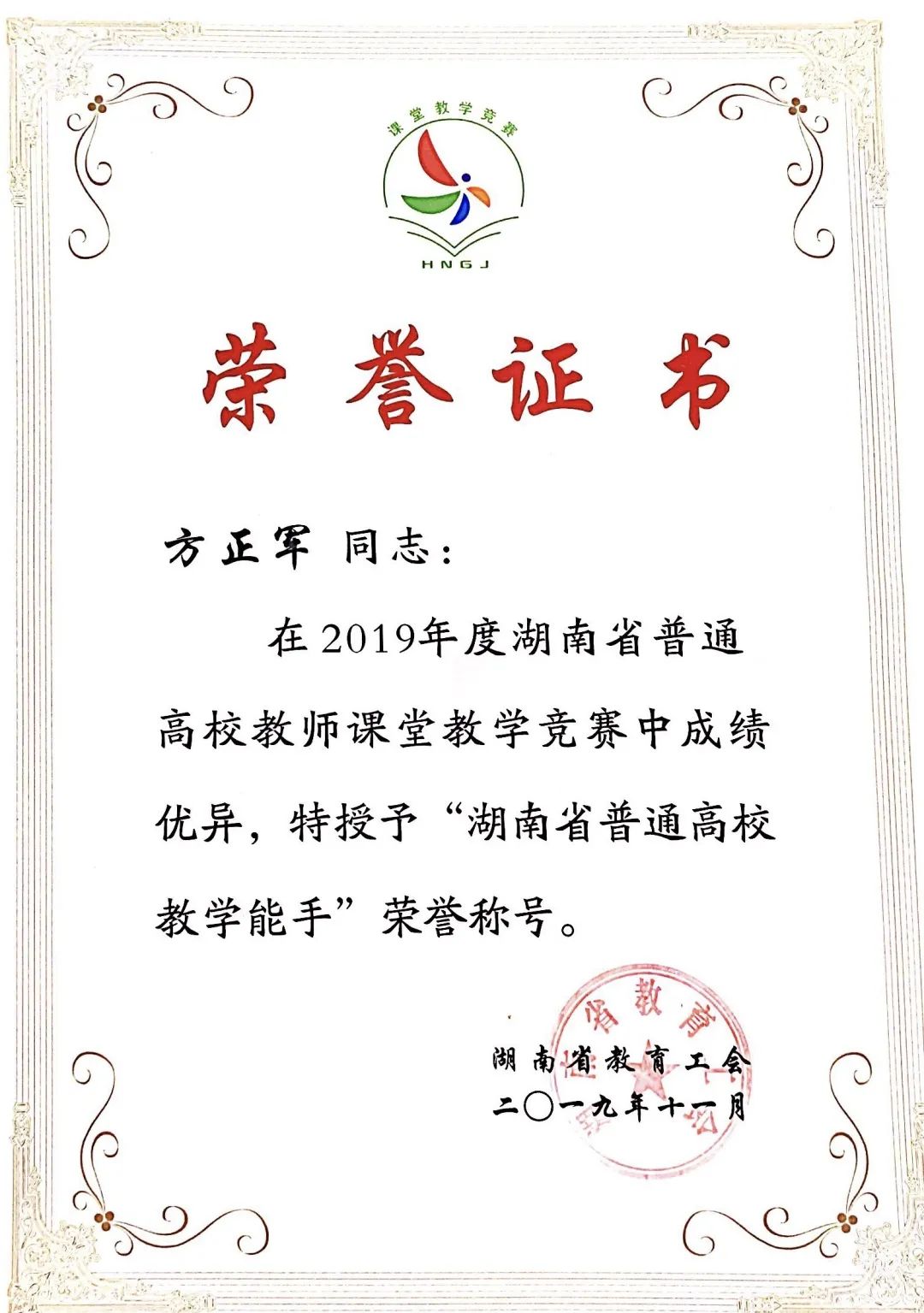 教书育人为初心,源于热爱,成于用心。有了爱,教书这一平凡的工作才会变得不平凡;有了爱,即使身体累,心也是快乐的;因为用心,付出总会有回报。爱之愈深,用心愈多,收获愈丰。这是对斩获2019年湖南省高校教师课堂教学竞赛一等奖,同时被省教育工会授予“湖南省普通高校教学能手”称号的伟德betvlctor1946源于英国方正军老师的生动写照。