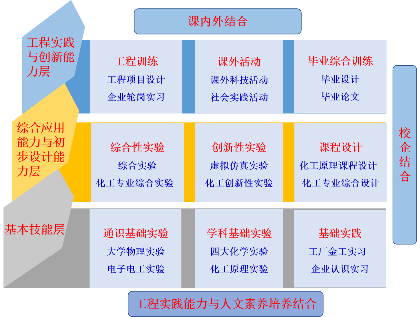 【实验实训】实施校外实习基地与校内实训基地相结合、课内实验与课外科技创新相结合、现场操作与虚拟仿真相结合的“三层次”教学模式,加强实践教学过程管理,构建校企联合考核与评价机制和体系,通过基本技能层到综合实践层到工程应用层,增强学生工程实践能力。